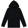 85% coton biologique / 15% polyester recyclé post-consumer. Coton peigné ringspun. Coupe ajustée. Molleton gratté 3 fils LSF (Low Shrinkage Fleece : molleton pré-rétréci). Lavé aux enzymes. 1/2 lune au dos. Bord cote 1 x 1 bas de vêtement et bas de manches. Double surpiqûre sur bas de manches, emmanchures et bas de vêtement. Simple surpiqûre à l’encolure. Encolure avec bande de propreté intérieure en chevrons. Capuche doublée en matière principale très épurée sans surpiqûre à l’ouverture.