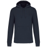85% coton biologique / 15% polyester recyclé post-consumer. Surface extérieure 100% coton peigné. Molleton gratté 3 fils LSF (Low Shrinkage Fleece). Lavage aux enzymes. Coupe droite. Bord-côte 1x1 montage tubulaire pour une meilleure finition au bas de manches et de vêtement. Poche kangourou. Capuche doublée 100% coton, coton jersey 180g. Bande de propreté jersey ton sur ton et finition demi-lune intérieur col. Finition double aiguilles sur bas de manches, bas de vêtement et col. Pas d'étiquette de marque au col, uniquement une puce de taille pour faciliter la personnalisation.