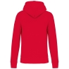 85% coton biologique / 15% polyester recyclé post-consumer. Surface extérieure 100% coton peigné. Molleton gratté 3 fils LSF (Low Shrinkage Fleece). Lavage aux enzymes. Coupe droite. Bord-côte 1x1 montage tubulaire pour une meilleure finition au bas de manches et de vêtement. Poche kangourou. Capuche doublée 100% coton, coton jersey 180g. Bande de propreté jersey ton sur ton et finition demi-lune intérieur col. Finition double aiguilles sur bas de manches, bas de vêtement et col. Pas d'étiquette de marque au col, uniquement une puce de taille pour faciliter la personnalisation.