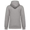 80% coton / 20% polyester. Tissu molleton gratté LSF 3 fils (Low Shrinkage Fleece) avec traitement antiboulochage. Fabriqué au Portugal. Coupe straight. Montage coupé cousu. Bord-côte 1x1 montage tubulaire pour une meilleure finition au bas de manches et de vêtement. Poche kangourou. Capuche doublée 100% coton jersey avec cordon de serrage plat œillets boutonnières. Finition demi-lune intérieur col. Finition double aiguille sur bas de manches, bas de vêtement. Pas d'étiquette de marque au col, uniquement une puce de taille pour faciliter la personnalisation.