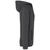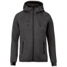 94% polyester/ 6% élasthanne (79% polyester/ 15% viscose/ 6% élasthanne pour coloris chiné). Matière ultra confortable. Fermeture zippée. 2 poches avant zippées finition thermosoudée. Capuche doublure jersey 65% polyester/ 35% viscose avec cordon de serrage bicolore finition embout plastique. Bas de manches resserrés avec une partie élastiquée contrastée et bas de vêtement finition biais contrasté Black sur tous les coloris et Dark Grey sur le Ash Heather (fermetures aussi).
