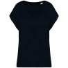 100% coton biologique. Coton peigné ringspun. Coupe loose. Col V et manches «kimono». Coutures latérales. Lavé aux enzymes. Col en matière principale. Bande de propreté intérieure col en matière principale. Renforts épaules en matière principale. Ourlet double surpiqûre bas de manches et bas de vêtement.