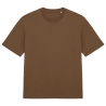 100% coton biologique. Coton cardé. Coupe oversize à épaules tombantes. Coutures latérales. Toucher légèrement « rêche ». Bord côte col 1 x 1. Bande de propreté intérieure col en matière principale. Ourlet simple surpiqûre bas de manches et bas de vêtement.