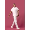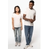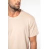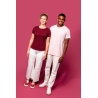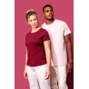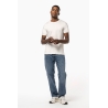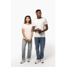 Coloris unis : 100% coton. Coloris Ash Heather : 98% coton / 2% viscose. Coloris Oxford Grey : 90% coton / 10% viscose. Coloris Wine Heather, French Navy Heather, Green Marble Heather, Cloudy Blue Heather : 80% coton / 20 % polyester recyclé. Coloris Grey Heather : 70% coton / 30% polyester recyclé. Tous les coloris sont fabriqués à partir de coton en conversion biologique. Coton peigné. Encolure ronde en bord-côte avec élasthanne. Bande de propreté ton sur ton à l'encolure. Coupe Tubulaire. Finition double aiguille bas de manches et bas de vêtement.