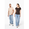 Coloris unis : 100% coton. Coloris Ash Heather : 98% coton / 2% viscose. Coloris Oxford Grey : 90% coton / 10% viscose. Tous les coloris sont fabriqués à partir de coton en conversion biologique. Coton peigné. Encolure ronde en bord-côte avec élasthanne. Bande de propreté ton sur ton à l'encolure. Finition double aiguille bas de manches et bas de vêtement.