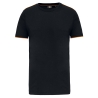 65% polyester / 35% coton peigné. Tissu jersey. Lavable à 60°C. Traitement antiboulochage. Encolure ronde avec élasthanne. Passepoil contrasté intérieur col et épaules. Finition bas de manches en bord-côte avec liseré contrasté. Finition double aiguille au bas de vêtement. Idéal pour une utilisation quotidienne.