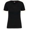65% polyester / 35% coton peigné. Tissu jersey. Lavable à 60°C. Traitement antiboulochage. Encolure ronde avec élasthanne. Passepoil contrasté intérieur col et épaules. Finition bas de manches en bord-côte avec liseré contrasté. Finition double aiguille au bas de vêtement. Idéal pour une utilisation quotidienne.
