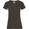100% coton (sauf Heather Grey : 97% coton / 3% polyester et autres coloris Heather 50 % coton / 50 % polyester). Coupe féminine cintrée avec longueur de corps réajustée. Col rond féminin en coton / Lycra® avec bande de propreté.