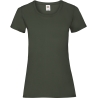 100% coton (sauf Heather Grey : 97% coton / 3% polyester et autres coloris Heather 50 % coton / 50 % polyester). Coupe féminine cintrée avec longueur de corps réajustée. Col rond féminin en coton / Lycra® avec bande de propreté.