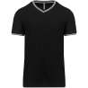 100% coton (90% coton / 10% viscose pour coloris chiné). Maille piquée en coton peigné. Finitions bord-côte avec rayures contrastées au col et bas de manches. Bande de propreté encolure et fentes latérales contrastées. Finition double aiguille au bas du vêtement.
