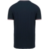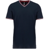 100% coton (90% coton / 10% viscose pour coloris chiné). Maille piquée en coton peigné. Finitions bord-côte avec rayures contrastées au col et bas de manches. Bande de propreté encolure et fentes latérales contrastées. Finition double aiguille au bas du vêtement.