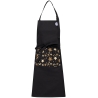100% coton. Lavage domestique 60°C. Boucle de réglage en métal au niveau du cou pour ajuster la longueur du tablier. Grande poche avec motifs étoiles sérigraphiés à l'avant. Lanières réglage col et taille contrastées en natural sur coloris rouge et ton sur ton sur coloris noir. Label "Origine France garantie. Produit en Bretagne" devant. Label OFG (Origine France Garantie). Dimensions : H 93 cm x L 78 cm. Poche : H 21 cm x L 31 cm.