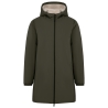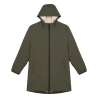 100% polyester recyclé post-consumer. Coupe droite. Imperméable 4000mm. Respirant 3000 g/m²/24h. Produit doublé en sherpa écru sur toutes les couleurs, capuche et corps. Manches doublées en taffetas 210T écru sur toutes les couleurs et rembourrées. Zip imperméable recyclé avec double tire-zip en métal recyclé. Parmenture en finition intérieure en tissu principal. Deux poches côtés passepoilées avec zip inversé. Capuche 3 panneaux avec cordon de serrage et stoppeurs recyclés intérieurs. Bas de manches élastiqués. Poche passepoilée intérieure côté cœur. Patch de personnalisation intérieur en tissu principal. Zip de personnalisation poitrine et bas de vêtement. Tissu avec membrane intérieure et coutures thermo soudées permettant au produit d'être imperméable.