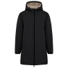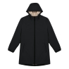 100% polyester recyclé post-consumer. Coupe droite. Imperméable 4000mm. Respirant 3000 g/m²/24h. Produit doublé en sherpa écru sur toutes les couleurs, capuche et corps. Manches doublées en taffetas 210T écru sur toutes les couleurs et rembourrées. Zip imperméable recyclé avec double tire-zip en métal recyclé. Parmenture en finition intérieure en tissu principal. Deux poches côtés passepoilées avec zip inversé. Capuche 3 panneaux avec cordon de serrage et stoppeurs recyclés intérieurs. Bas de manches élastiqués. Poche passepoilée intérieure côté cœur. Patch de personnalisation intérieur en tissu principal. Zip de personnalisation poitrine et bas de vêtement. Tissu avec membrane intérieure et coutures thermo soudées permettant au produit d'être imperméable.