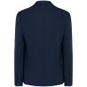 50% polyester / 23% viscose / 22% laine / 5% élasthanne. Doublure en twill (100% polyester) ton sur ton ton. Coupe ajustée. Veste à deux boutons ton sur ton. Deux poches passepoilées avec rabats, ainsi qu'une poche poitrine passepoilée côté cœur. Fausse boutonnière ton sur ton sur revers de col. Empiècement côté qui vient donner la forme au produit. Bride de suspension en satin à l'encolure. Couture milieu dos avec deux fentes bas de vêtement. Bas de manches avec fausse fente à 4 boutons ton sur ton. Finition avec un biais contrasté, pour les deux poches poitrines intérieures. Une poche téléphone et une poche ticket passepoilées ton sur ton intérieur gauche du vêtement au porté. Zip de personnalisation côté gauche au porté. Pas d'étiquette de marque, uniquement une puce de taille pour faciliter la personnalisation.