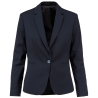 64% polyester / 34% viscose / 2% élasthanne. Doublure 100% polyester taffetas. Veste 1 bouton. 2 poches passepoilées devant. 2 poches intérieures boutonnées. Bas de manches avec 3 boutons. 1 fente d'aisance au dos.