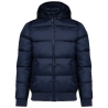 100% polyamide recyclé ripstop 380T. Tissu déperlant. Garniture intérieure 100% polyester recyclé. Doublure 100% polyamide recyclé. Coupe straight. 2 poches côtés zippées et passepoilées. 1 poche plaquée intérieure avec bande auto-agrippante. Fermeture zippée devant. Col montant avec capuche 3 parties doublée, matelassée et ajustable à l'aide d'un stoppeur. Bord-côtes au bas de manches et de vêtement. Zip invisible intérieur côté cœur et au bas du vêtement pour accès personnalisation. Garnissage injecté : le grammage peut varier selon les zones du vêtement. Le poids total est indicatif.