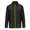 100% polyester. Softshell 2 couches, tissu extensible dans les 4 sens pour plus d'aisance avec couche intérieure polaire pour plus de chaleur sur les manches et les épaules. Devant et dos : 100% polyester 75 g taffetas 230T avec enduction. Tissu traité déperlant. 2 poches avant zippées. 1 étiquette nom fixée intérieur gauche. Passepoil contrasté aux emmanchures et intérieur col. Fermeture zippée avant et poches contrastées. Zip invisible de personnalisation au bas de vêtement. Idéal pour une utilisation quotidienne.