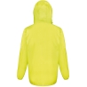 100% nylon imperméable 3000 mm et respirant 1000 g/m²/24h. Très léger. Coutures thermocollées. Fermeture zippée contrastée à l'avant et cordon de serrage au bas du vêtement. Poignets et capuche élastiqués. Poches latérales dont une zippée. Étiquette imprimée dans le col et patte de suspension cousue à l'intérieur. Se replie dans un sac de rangement coordonné.