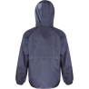 Polyester 190T StormDri enduit PU 2000. Doublure corps en filet 100% polyester et doublure manches 100% polyester. Coupe-vent et imperméable 2000mm. Coutures soudées imperméables. Aérations devant et au dos. Extrêmement légère. Capuche amovible dans le col avec cordon de réglage. Fermeture zippée. 2 poches zippées. Poignets élastiques. Se range dans sa propre poche. Bas du vêtement réglable par cordon élastique.