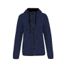 Tricot intérieur gratté 100% polyester. 2 poches devant zippées contrastées et 1 poche poitrine zippée contrastée. Capuche doublure contrastée jersey 100% coton avec cordon de serrage plat contrasté. Bas de manches et de vêtement avec finition biais contrasté élastiqué. Point de recouvrement sur les découpes.